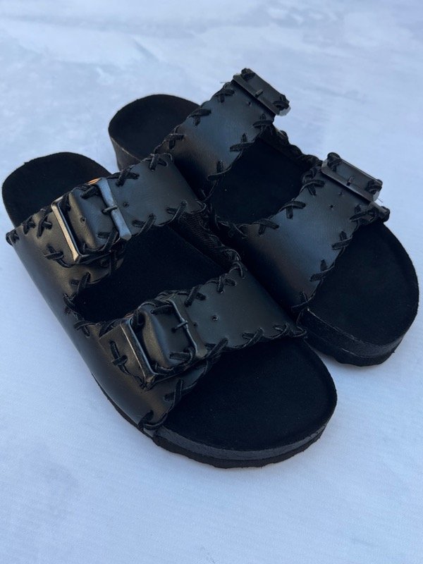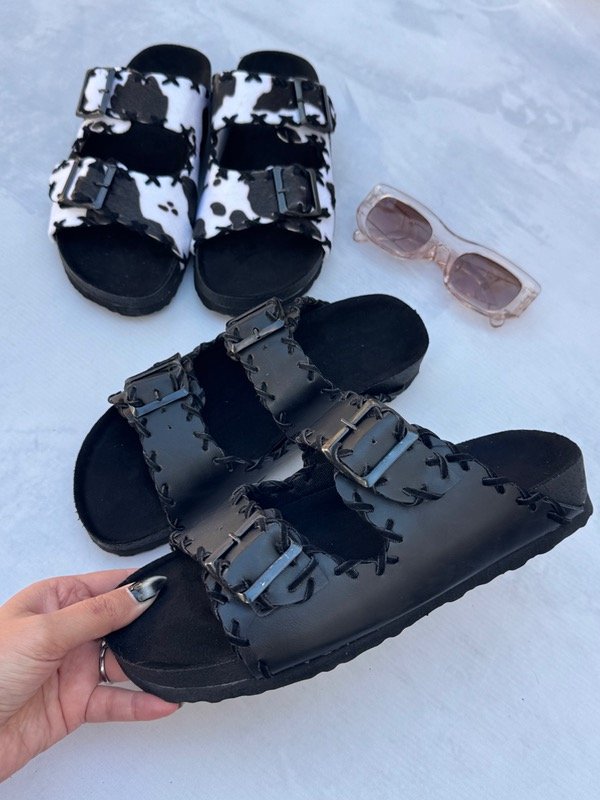 Sandalias con hebillas y detalles en gamuza